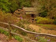 My first attempt at a landscape à la Barbara Rae. I spent a few days on this. It seemed to me that her paintings are made up of a few large, well-composed shapes, made exciting by the use of lively and complex strokes and textures, variations of hue, tone and intensity. She uses oils and silk screen. I tried to get the effect in acrylics.